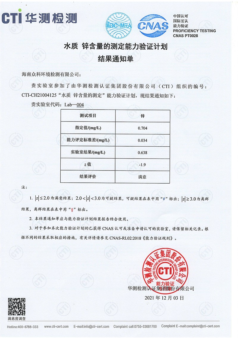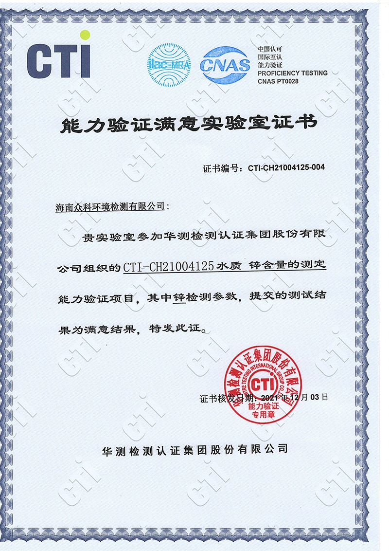 能力驗證滿意實驗室證書